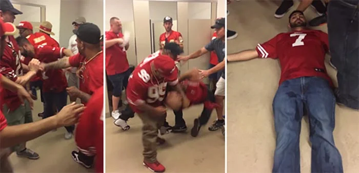 On Sunday, October 5, at about 1:20 p.m. officers were notified by a stadium employee of the assault inside a men’s restroom located on the 300-level on the north side of the Levi’s Stadium in Santa Clara. Evidence, including a smart phone video taken by a witness, shows that the brothers physically assaulted the two victims, punching them numerous times.