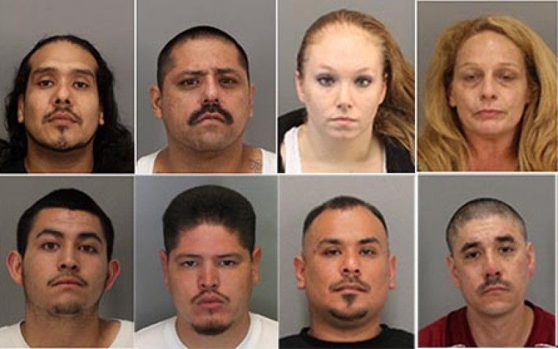 The suspects arrested, or still wanted* in the operation were (top photo) Armando “Gino” Silva, 44; Benjamin “Big Happy” Mendez, 37; Carlos Roman, 40; Cassey Klauer*, 27; Colleen Dunn, 51; Daniel “Bird” Millich, 27; Diego “Chucky” Mendoza*, 25; Fidadelpho “Lil Sav” Ortiz, 17; Frank “Digit” Cruz, 29; Fred “Maton” Macias*, 35; Freddie DeLaCruz, 33; and Herman “Chango” Sifuentes, 34.