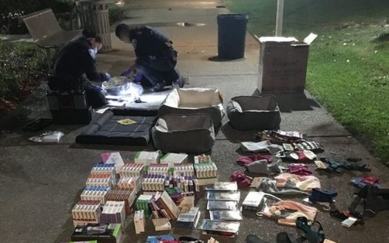 Arriving officers saw the suspect exiting from the store at approximately 3 a.m. He was carrying boxes of pet products and loose merchandise from inside the store.