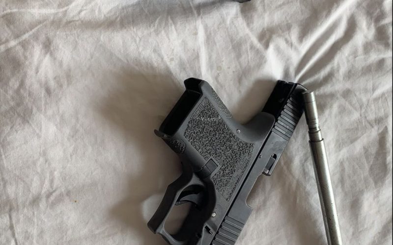 During a search of the room, detectives found a loaded semi-automatic handgun. They also recovered suspected methamphetamine, and evidence of identity theft involving 10 victims.