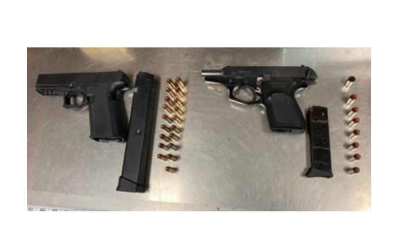 During the initial contact, officers contacted four occupants in the truck, two of which were under the age of 18 years. The driver of the vehicle was identified as 19-year-old Santa Rosa resident Sergio Guerrero, and front passenger as 20-year-old Santa Rosa resident Roman Vega. The rear passengers were 14 and 16-year-old Santa Rosa residents. Records check showed Vega to be on active probation out of Sonoma County for vandalism, with a search and seizure clause as a term of his probation. All occupants were removed from the truck and a subsequent search revealed two separate loaded firearms under a seat. One of the firearms was a polymer 80, 9mm “ghost gun, which was loaded with a 30-round magazine. The other loaded firearm was a Bersa .380 handgun, which had its serial number partially filed off. All four occupants were arrested as a result of the investigation.