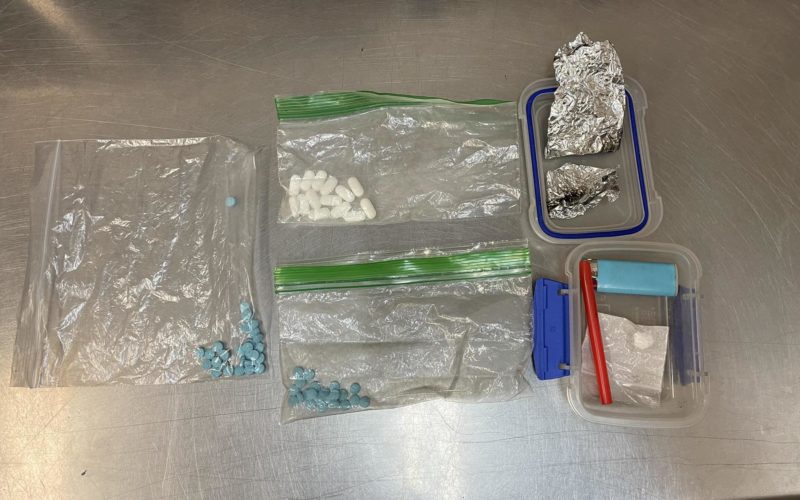 Cody was placed into custody and during a search of Cody and his belongings several illegal items were located. The Deputy located 0.8 grams of what appeared to be Methamphetamine and later tested positive for Fentanyl. Fifty-one blue pills with “M30” imprinted on them were also located. According to the Department of Justice drug fact sheet, these pills appeared to be counterfeit Oxycodone and contain Fentanyl. Fourteen white pills were also located, and Cody later told authorities they were Vicodin pills which he did not have a prescription for.
