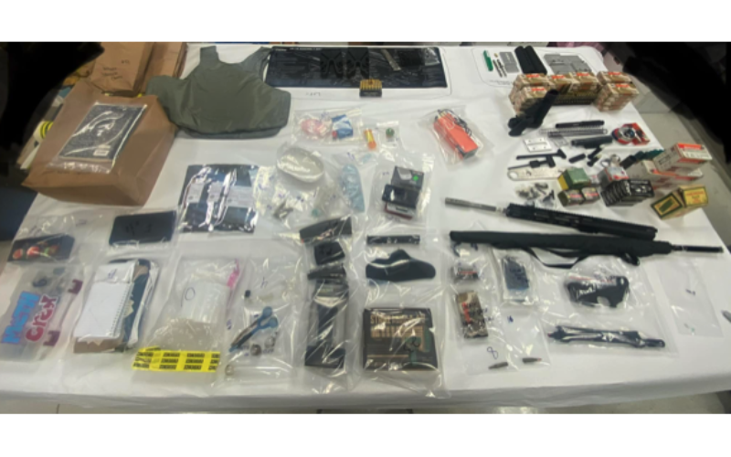 During the search of the premises, our officers discovered ballistic body armor, evidence of narcotics trafficking (including methamphetamine and fentanyl pills), unregistered firearm components capable of producing both pistols and assault rifles, a variety of ammunition, and potential evidence related to fraudulent activities.