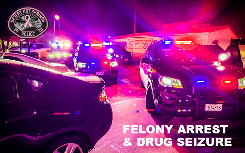 DESERT HOT SPRINGS, CA — “Late last night, officers located a vehicle driven by a subject with an outstanding felony warrant. A traffic stop was conducted, and the subject was taken into custody without incident before being booked into jail.