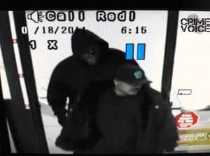 The second suspect, who was carrying a handgun, was said to be in his early 30s, 6-feet tall, 240 pounds with a large build and was wearing a dark hooded sweatshirt and a bandana.