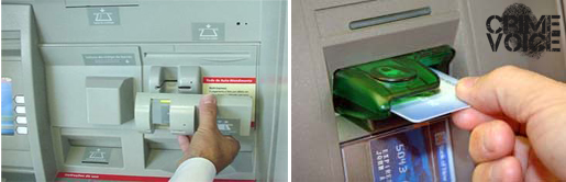 ATM Skimmers can be installed by criminals over a regular ATM slot, and can have many different looks. Anything suspicious should be reported immediately