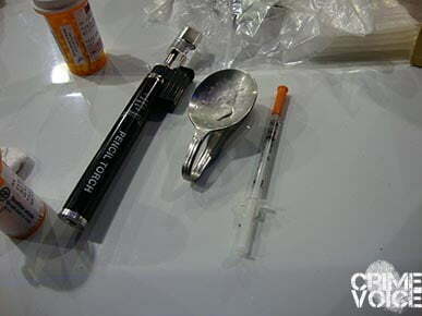 A second deputy then arrived to assist, and they continued the search, locating a black bag in the passenger area of the car, which contained about a pound of processed marijuana. The pair continued their game of denial, perhaps planning to say they borrowed the car from a friend, or maybe stole it from a drug dealer. Whatever their story may have been, it soon dried up as the deputies discovered a black duffle bag in the trunk. Inside this were a number of hypodermic needles, packaging material and a bent spoon with white crystaline residue consistent with methamphetamine. Also in the bag were some small bags containing white crystal meth, along with men’s clothing, and some prescription medicine bottles linking it to Blakeley.