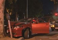 Police saw Jeremy Wade, 27, get into his car and drive off. Wade drove four blocks on one way 15th Street before crashing his car into a tree near 15th and L, after trying to turn left onto L going the wrong way. His car came to rest in front of the California Department of Health Services building, and opposite the State Capitol Park and International World Peace Rose Garden.