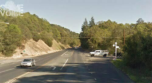 So with Alisha awake and the deputies in pursuit, Elliot Malone continued driving recklessly into Forestville, and got a flat tire as he reached Mirabel Road. That didn’t stop him, but it slowed him down. A couple miles further on, as he reached Trenton-Healdsburg Road, one of the deputies forced him off the road with a patrol car maneuver. The van spun around, and crashed into the dirt embankment. Malone and his dog jumped out and ran away.