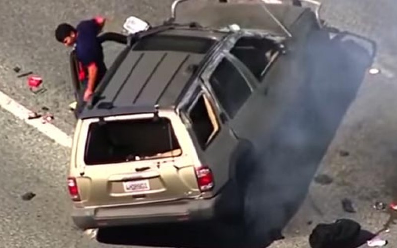 Finally, in Los Altos, Bernal was forced to a halt by a spike strip that CHP officers had laid across the I-280 roadway in anticipation of his arrival. After the tires of his Nissan Pathfinder were shredded, the SUV flipped onto the freeway’s central median. Bernal was, however, able to leave the vehicle unaided before he was arrested. Video of the final crash is posted on YouTube.