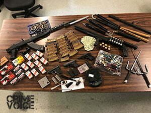 Inside the home, the cops found black tar heroin, cocaine, and methamphetamine “packaged for narcotics sales,” as well as an arsenal of weapons that included “two stolen handguns, one unregistered handgun, and two rifles,” as well as various illegal martial arts weapons ammunition, and knives, all prohibited items under the terms of Davis’ parole status.