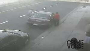 LOS ANGELES – On the afternoon after Christmas, two men are clearly captured on surveillance video making purchases at a local store, getting into their car, striking a man riding a motorized bicycle and continuing to drive off without stopping.