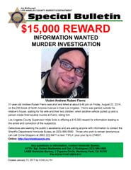 LOS ANGELES – Los Angeles County Sheriff’s Homicide Bureau detectives want your help. A $15,000 reward is being offered by the LASD Homicide Bureau, Board of Supervisor Hilda Solis, and family members of Andrew Fierro for information leading to the arrest and conviction of suspect(s) responsible for the East Los Angeles murder of Andrew Ruben Fierro (31).