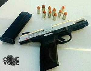 Deputies discovered a loaded .45 caliber handgun in his disabled truck. Both the truck and gun were stolen from Las Vegas.