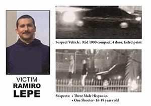 The family noticed a faded red, 1990s four-door compact vehicle drive past, then stop. Three Hispanic men exited the vehicle. The youngest-looking man, described as 16-19 years old, produced a handgun and fired several shots at the gathering, which struck Ramiro several times.