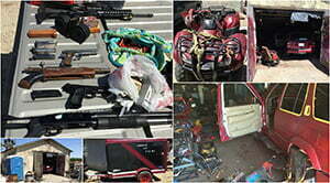 In addition, deputies confiscated 5 guns – two rifles, two handguns, and a sawed-off shotgun.