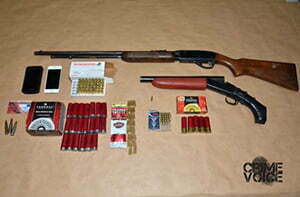 Officers searched Navarro’s home after being granted a warrant to do so, and confiscated a sawed off 12-gauge shotgun, a .22 caliber rifle, and several rounds of ammunition.