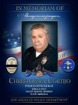 LOS ANGELES — On April 5 2014, LAPD Officer Christopher Cortijo lost his life as he sat on his motorcycle at a stop light behind another car.