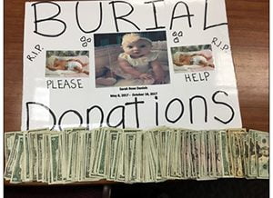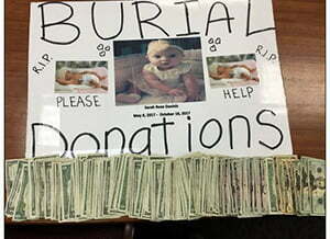It turns out Doll and Love made signs that requested donations for their baby’s burial. The baby they had pictured on their sign does not belong to either of them, and there were no burial funds needed, except for their greed.