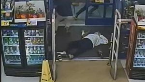 As they ran out of the store, they knocked down an 86-year-old woman, who lost her pulse but was resuscitated by first responders and taken to the hospital. She is in critical condition.