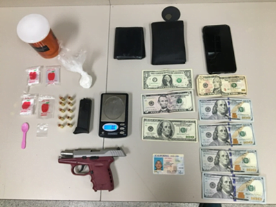 At 8:21 pm officers conducted the infamous traffic stop on a vehicle. During the stop they found a loaded handgun and half an ounce of cocaine.