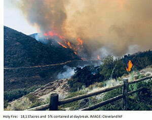 That quote was three days ago. Many road closures and evacuations later, and at today’s daybreak, National Forest reported “#HolyFire morning update: 18,137 acres and 5% contained. For those wondering about containment, the hand/containment line grows as the fire grows. We continue to actively engage, but cannot get ahead of the fire.”