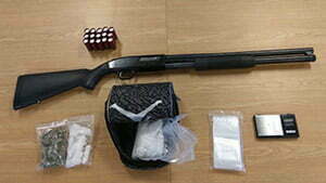 As a result, 0fficers located 13 ounces of meth, 2 grams of heroin, “indicia for drug sales,” a 12 gauge shotgun and shells.
