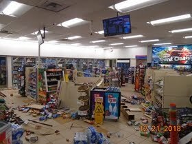 The damage increased exponentially as the terrified store clerk dialed 911 while concealed behind the counter.