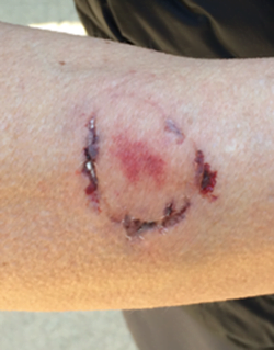A violent physical altercation ensued, and the jogger was severely bitten on her forearm by the dog-walking suspect. Next the attacker robbed the victim.