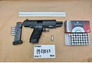 He admitted to brandishing the weapon but insisted the weapon was not a real. SRT searched the home per a parole compliance check and found a loaded Hi-Point 45 semi-automatic handgun.