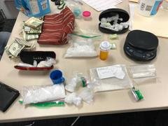 That warrant was served on the 17th, leading to the discovery of “approximately 1 pound of methamphetamine, five loaded syringes full of suspected heroin, miscellaneous prescription medications and a large sum of U.S. currency,” all of which pointed to ongoing sales and distribution of controlled substances.