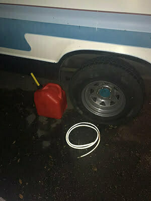 The responding officer came into contact with the female as she was under a van with her gas can and plastic tube. Two male suspects, who were also with her, were found nearby.
