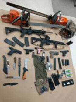 Deputies then searched Wentworth’s residence and discovered a load of weapons – two assault rifles, five handguns, seven loaded magazines, one 50-round drum magazine, three high capacity rifle magazines, over one hundred rounds of ammunition, stolen property that included two chainsaws, burglary tools, paraphernalia and meth.