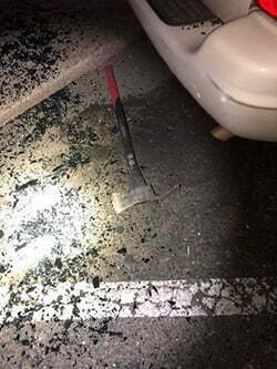 Responding officers observed 37-year-old David Sean Johnson break the rear window out of a parked SUV using an axe. The shirtless man was quickly detained and put into a patrol car.
