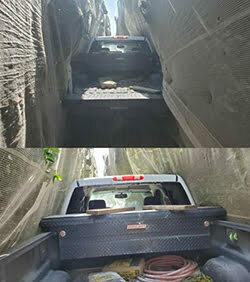 OnStar cut the power to the engine, leaving Boston cruising at under 5 MPH and slowing down still. He managed to will the truck 100 feet into the orchard row before deputies fired non-lethal PepperBall and bean bag rounds through the rear window of the truck. When Boston refused to surrender, K-9 Ana was released, at which point Boston gave up.