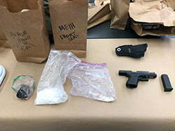 The man, later identified as 38-year-old Benjamin Pearsall, turned out to be on the hook for two warrants. He was also in possession of half a pound of meth, a quarter pound of heroin, marijuana, and a loaded handgun.