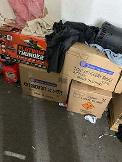 A call for service had previously been issued for the residence, and when detectives made a follow-up call, they saw the large cache of fireworks.