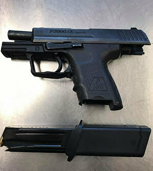 The gun that the suspect dropped was a loaded 9mm Heckler and Koch P2000SK with an extended magazine.”