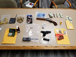 Officers made their way to Memorial Park where they then contacted 20-year-old Jarret Law, who was in possession of a sawed-off shotgun and a controlled substance.