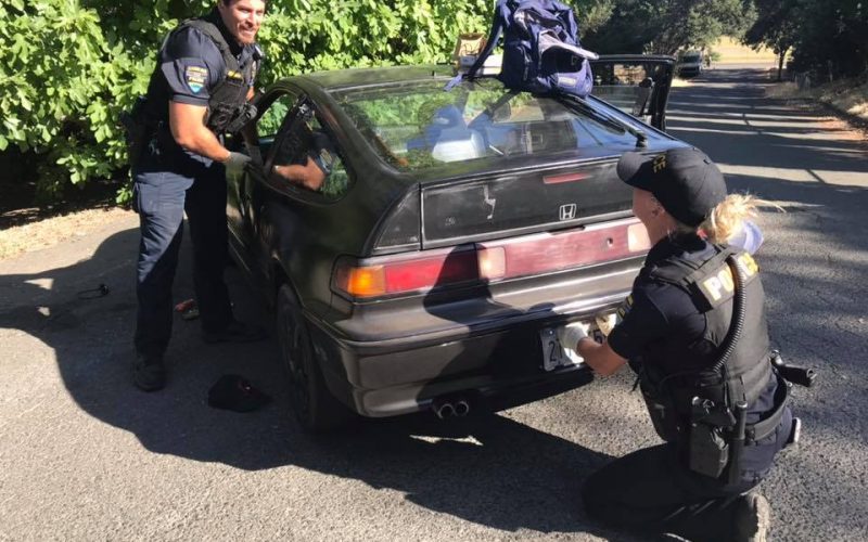 The officer had been driving on Lakeshore Drive on the morning of July 31st when the car ahead of him caught his eye; it appeared to be a 90’s-era Honda that had been spray painted black, a common technique used by car thieves to make the vehicle less recognizable.