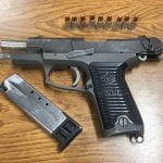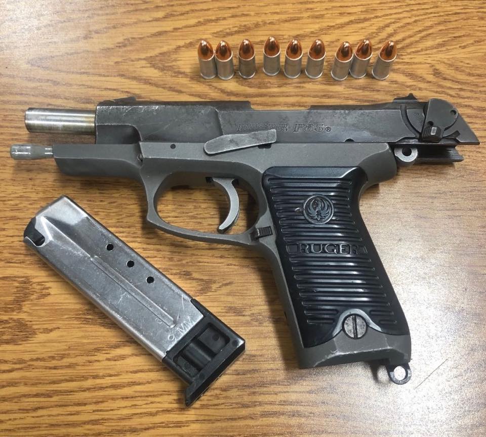 The officer soon discovered a loaded, unregistered 9mm pistol in the center console of his vehicle.