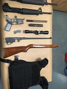 Inside Mendoza’s vehicle officers discovered several rifles, as well as several parts for an AR-15 assault rifle. In addition, they found body armor with metal plates and a rifle scope.