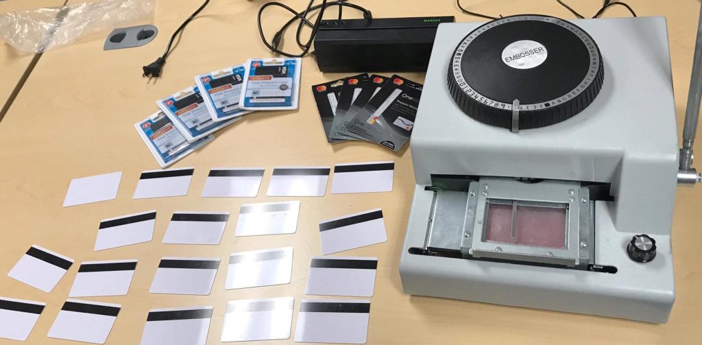 When deputies searched the vehicle, they found a stockpile of paraphernalia as well as evidence of identity theft, including documents with credit card info, an embosser, an electronic card reader, and blank cards used to make credit cards.