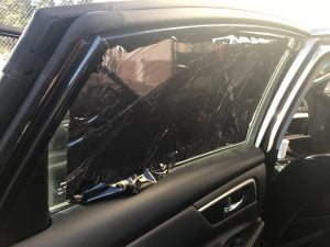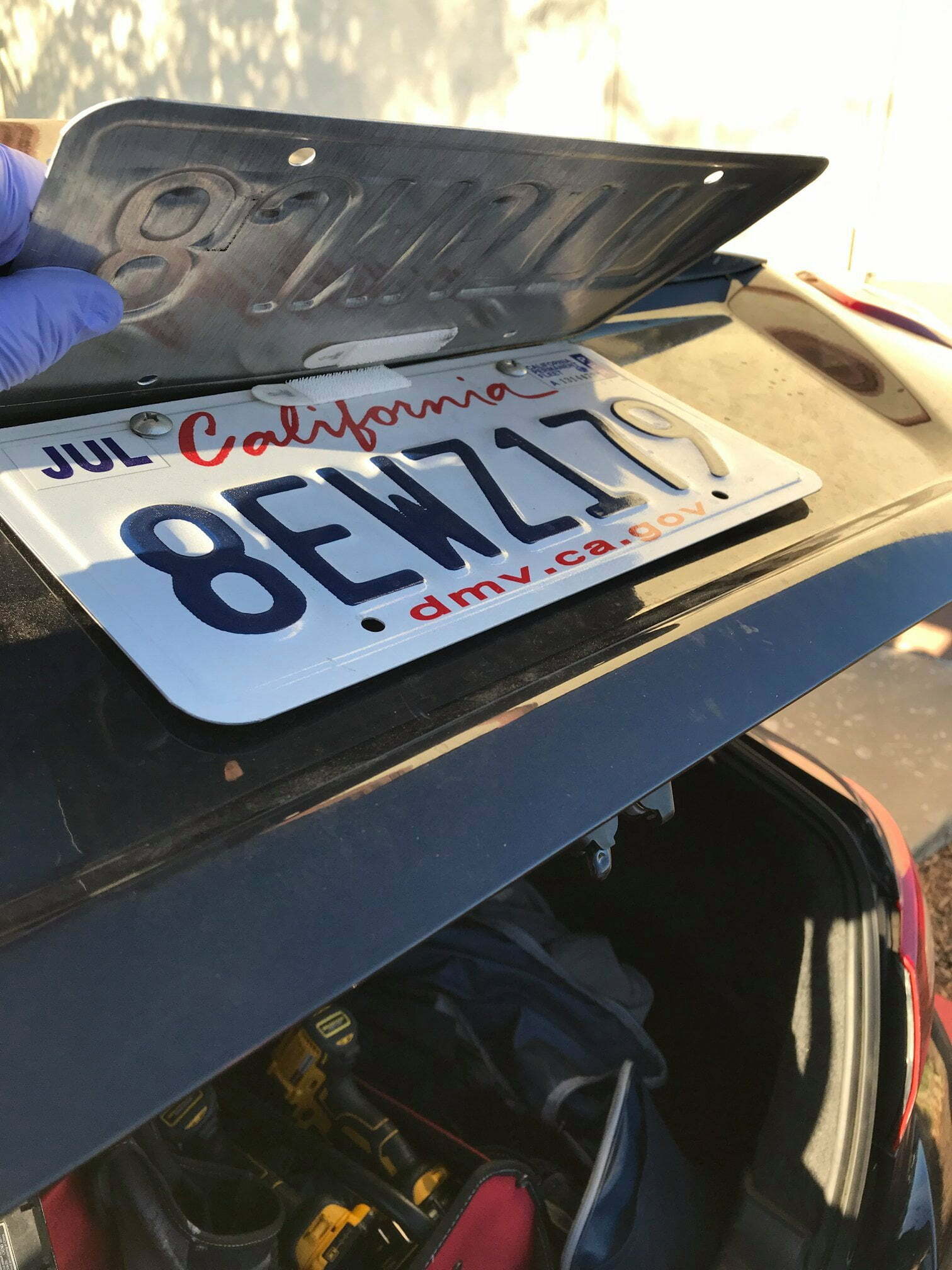 This second license plate had recently been stolen off another car and the vehicle, a rental, had had a temporary tint applied to the windows.