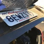 Officers were alerted to the presence of an occupied vehicle parked behind a school on the 1900 block of Peabody Road and, upon responding to the scene, discovered that the car’s plate had been covered by a second plate secured by velcro.