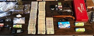 Also recovered on the scene were a half-dozen loaded firearms and “approximately $11,000 in cash.”