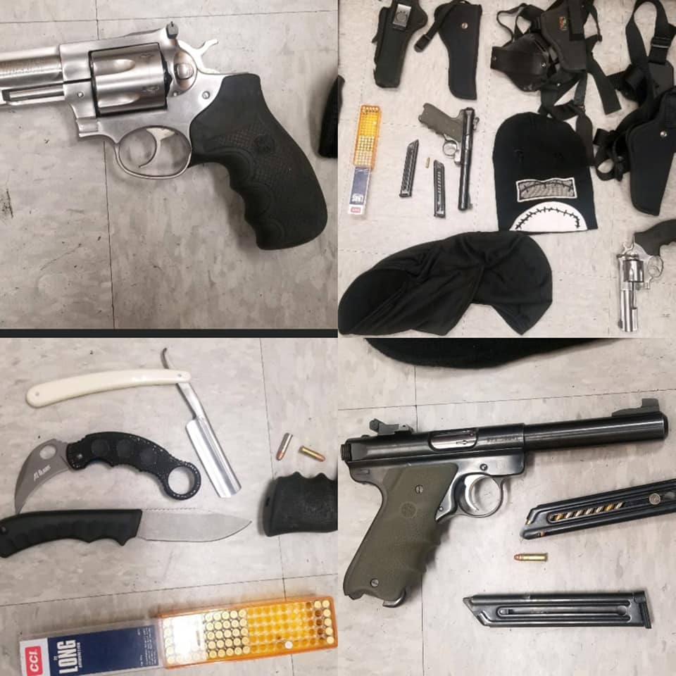 After removing the suspects from the vehicle without incident, Officers searched the vehicle and located two stolen firearms, one of which was loaded and had a round in the chamber and a full magazine.