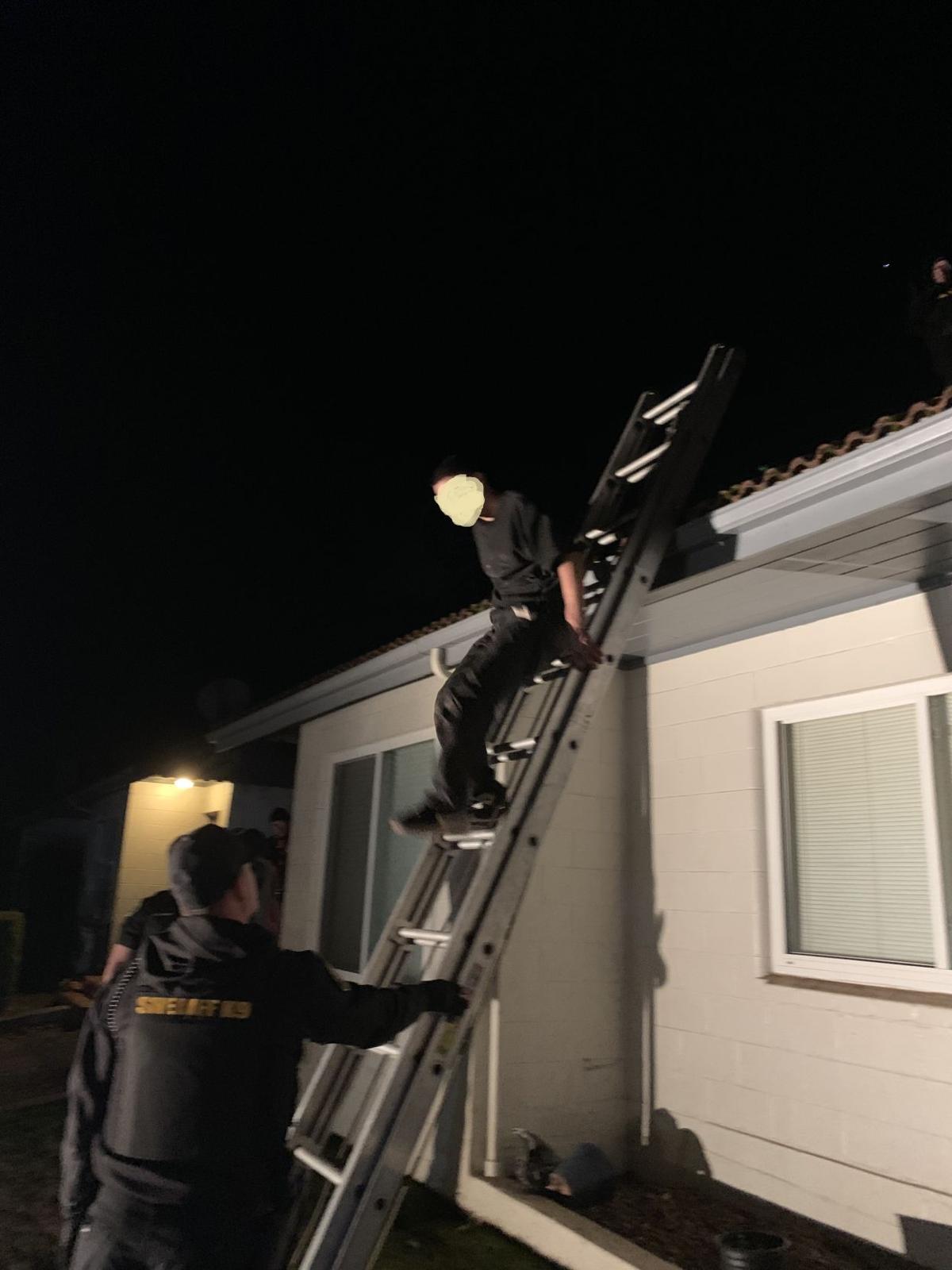 After setting up a perimeter, deputies tried to talk him down. Not only did he refuse, officials say, he also began pulling ceramic tiles off the roof and hurling them down at deputies.