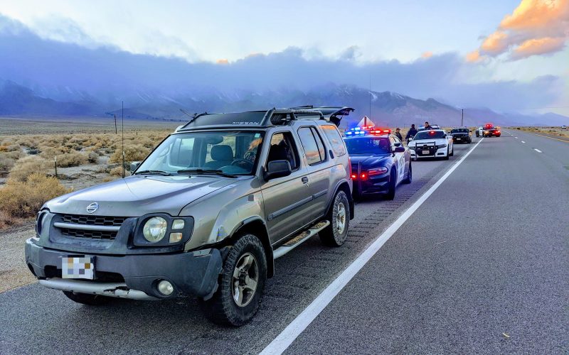 Local CHP began receiving numerous calls about a woman driving recklessly along southbound US-395 near Keough Hot Springs Road and managed to catch up with her and attempt an enforcement stop near Reynolds and Juniper Roads in Big Pine.