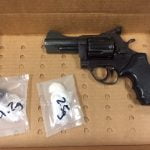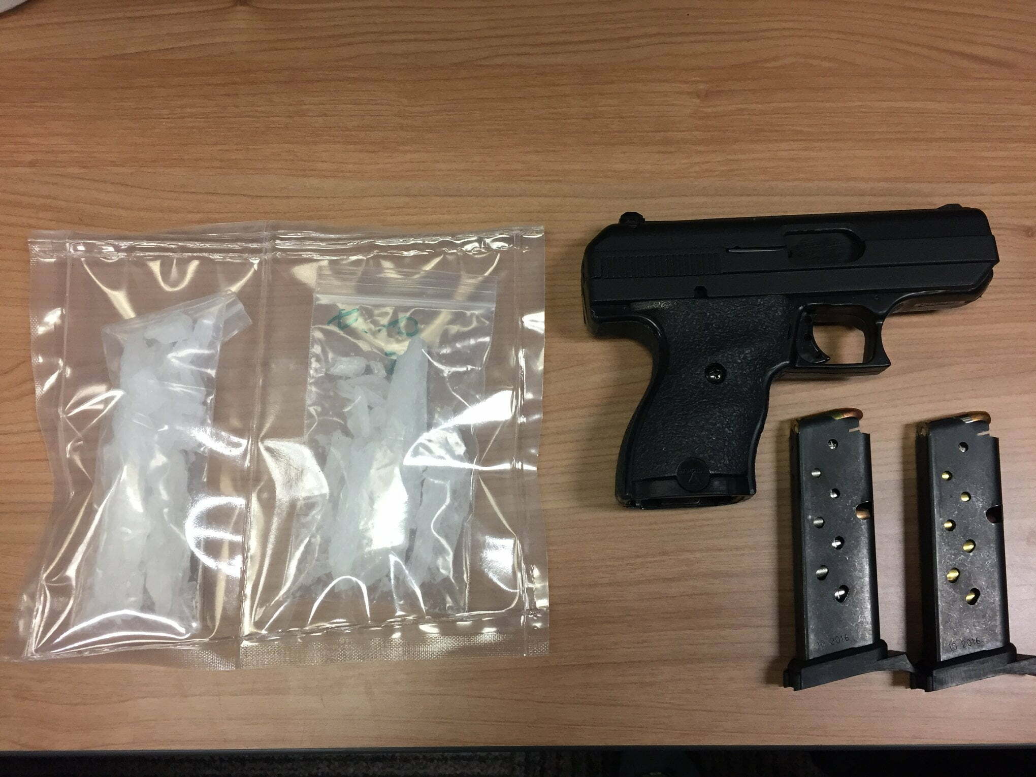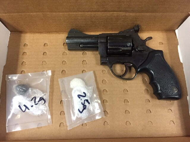 An officer and K9 unit were called to the scene. After the K9 indicated illegal narcotics were in the vehicle, officers conducted a search and discovered heroin, eth, a scale, and a loaded revolver.